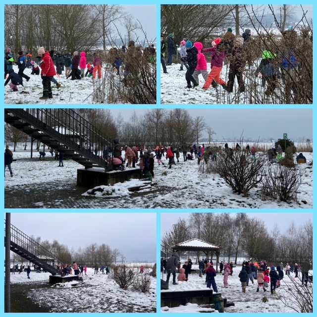 Schneevergnügen im Schulgarten