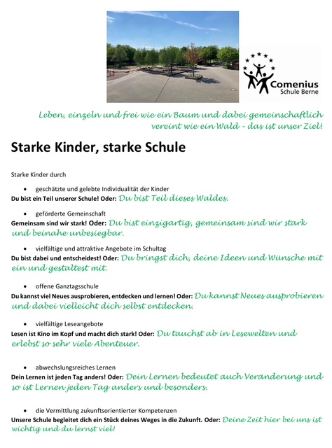 Unterrichts- und Erziehungsziele der Comenius-Schule Berne