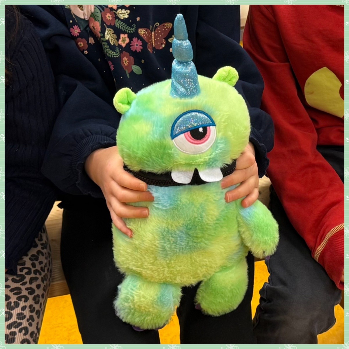 Unser neues Trost-Kuscheltier "Larmy" wird im Schülerrat präsentiert. Die Idee dazu stammt aus einem der Klassenräte und wurde in den Schülerrat getragen. Man kann Larmy nun im Erste-Hilfe-Raum finden: