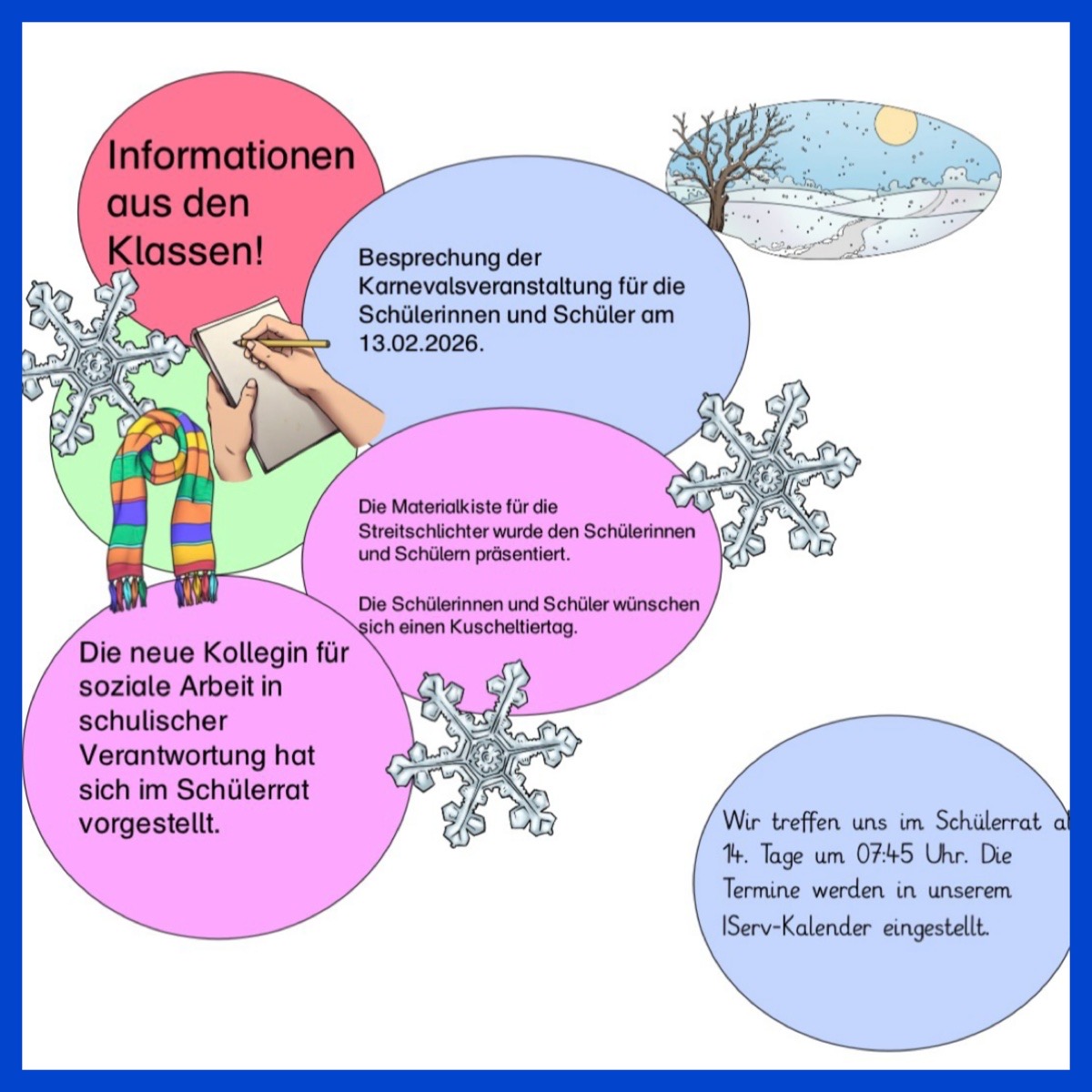 Der Schülerrat trifft sich immer regelmäßig im Musikraum. Durch den Schülerrat werden die Interessen der Schülerinnen und Schüler an unserer Schule vertreten; die Kinder erhalten hier die Möglichkeit, das Schulleben aktiv mitzugestalten, d.h. Vorschläge zu bestimmten Bereichen zu machen, mitzuentscheiden, Probleme aufzuzeigen und an entsprechenden Lösungen mitzuarbeiten.